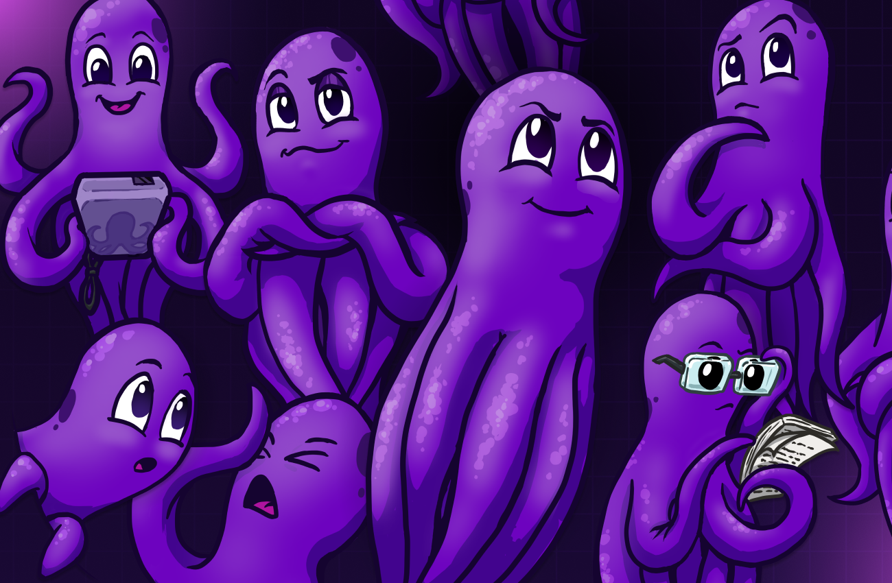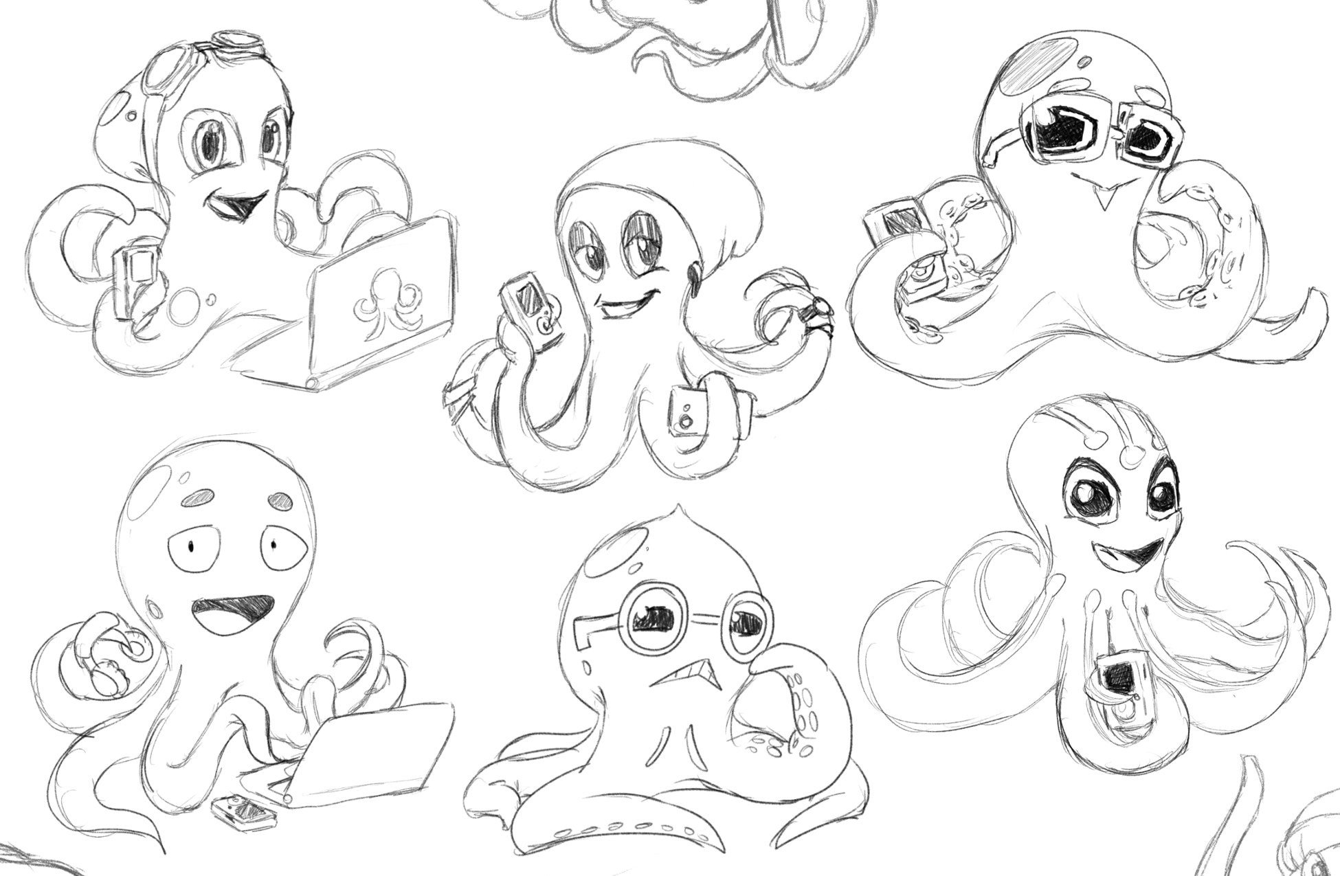 Then, at some point, the newly formed marketing team made an illustration of Octobit for a post, and it became clear to all of us that he needed more love. That’s how we started a complete mascot redesign project.