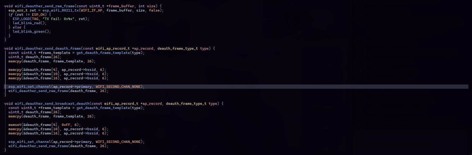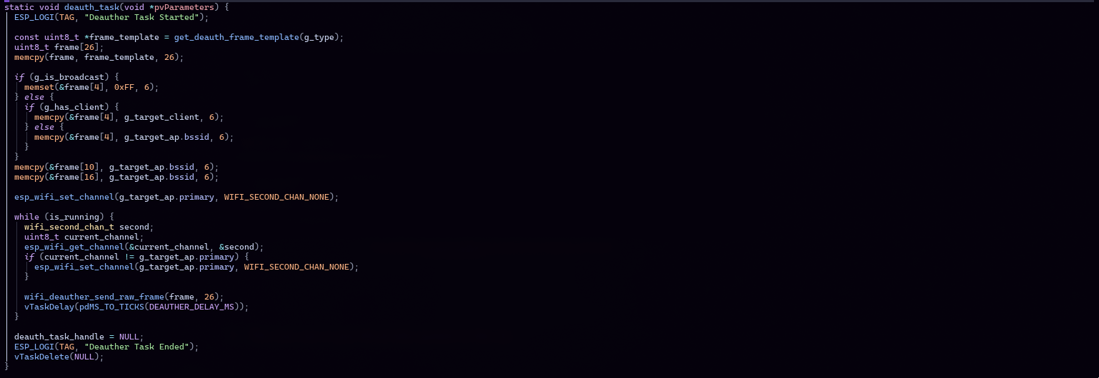 - By leveraging a spoofing technique, the attacker crafts a malicious frame. The exploit sets the router's MAC as the source address while targeting either the entire network via broadcast or a specific client MAC. This forces the target(s) to drop the connection immediately